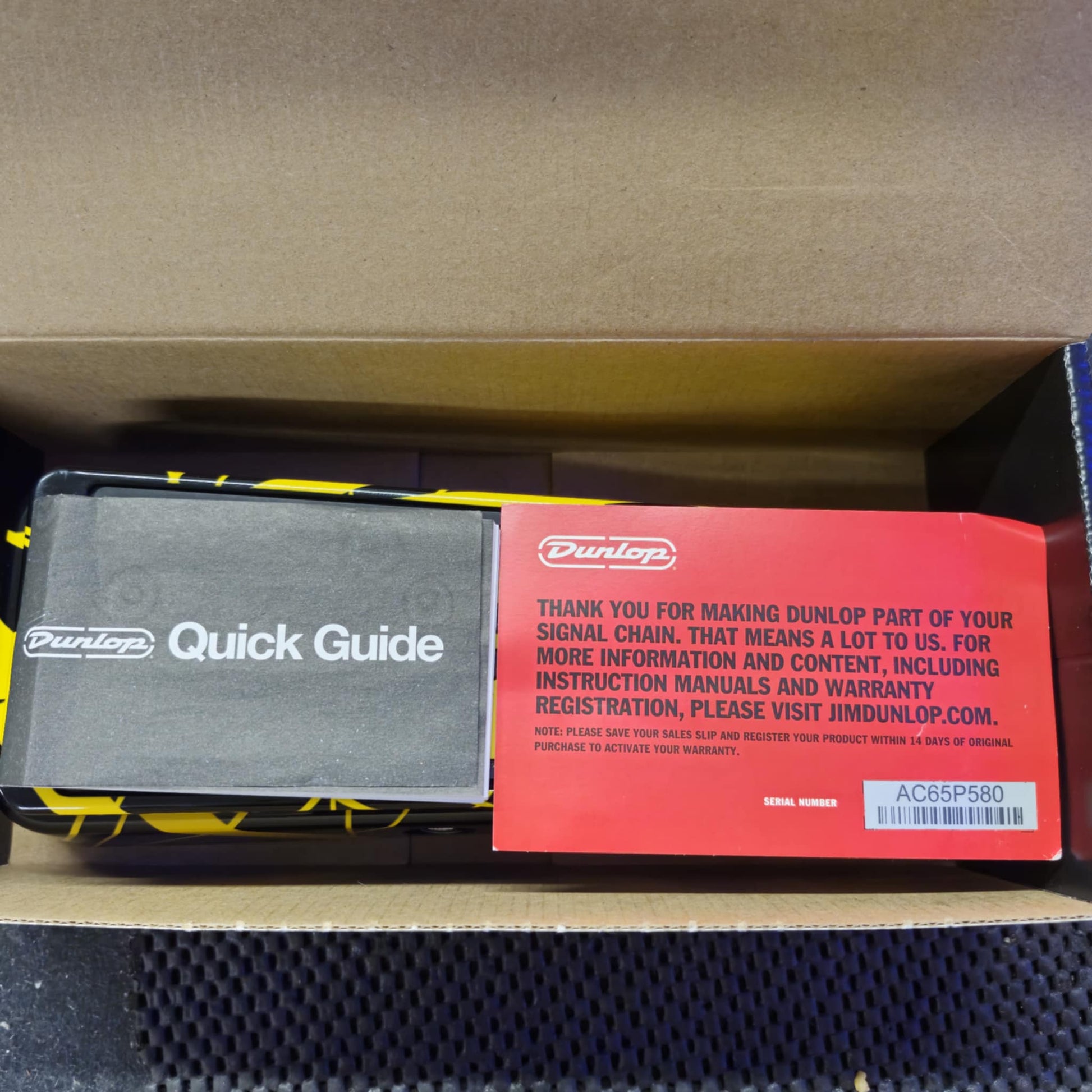 Dunlop have also developed a worn-in pot and used a hand-selected inductor give the EVH Wah Wah the same "Holy Grail" feel and tone. With its true hardwire bypass, dual bright blue bypass LEDs, and graphics based on the black and yellow-striped guitar featured on Van Halen II round out this EVH-approved Cry Baby Wah with a voice and look all its own.