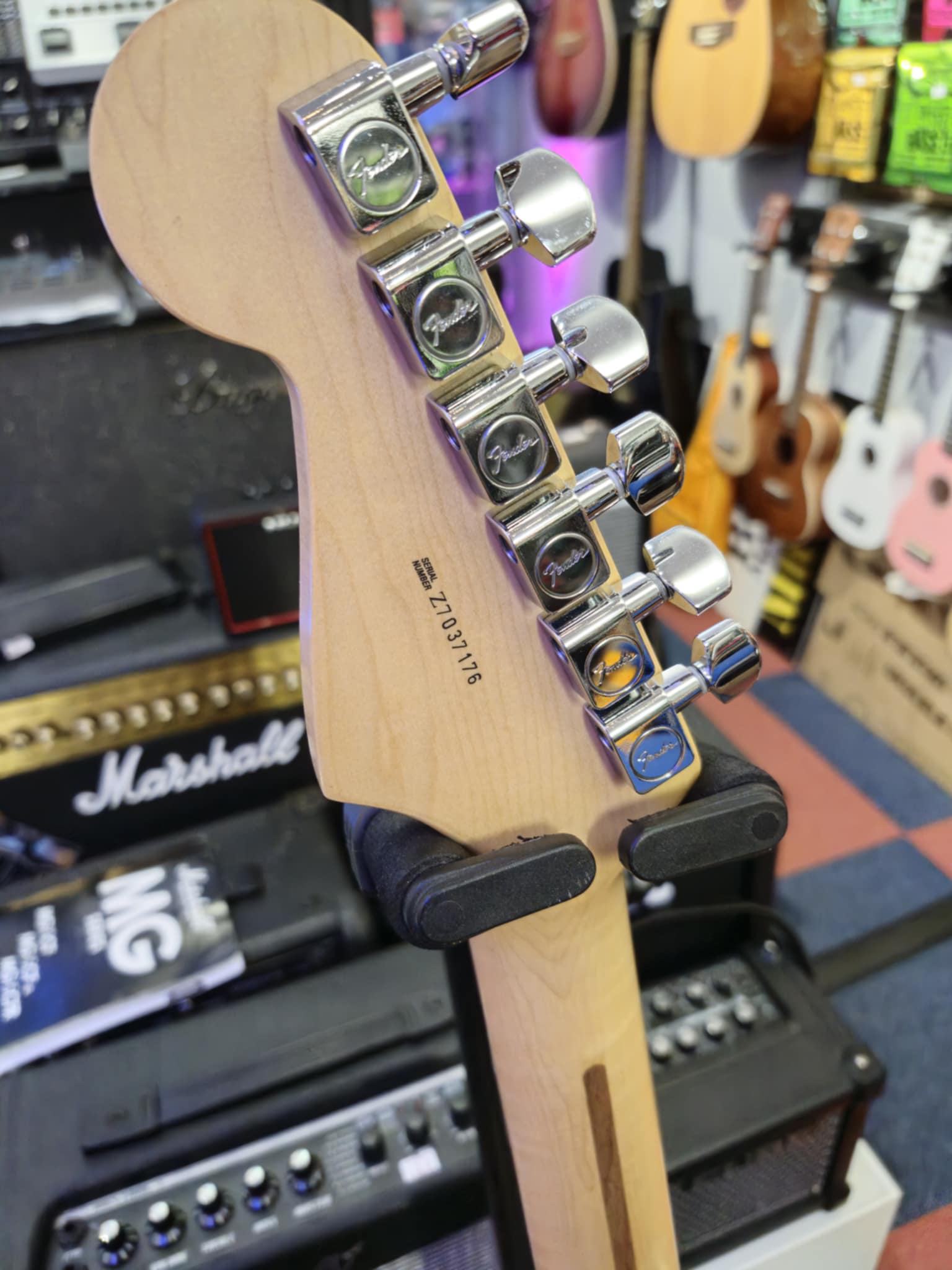 This guitar has been well looked after. There is very light fretwear and some light scratches on the pickguard which are very hard to see.