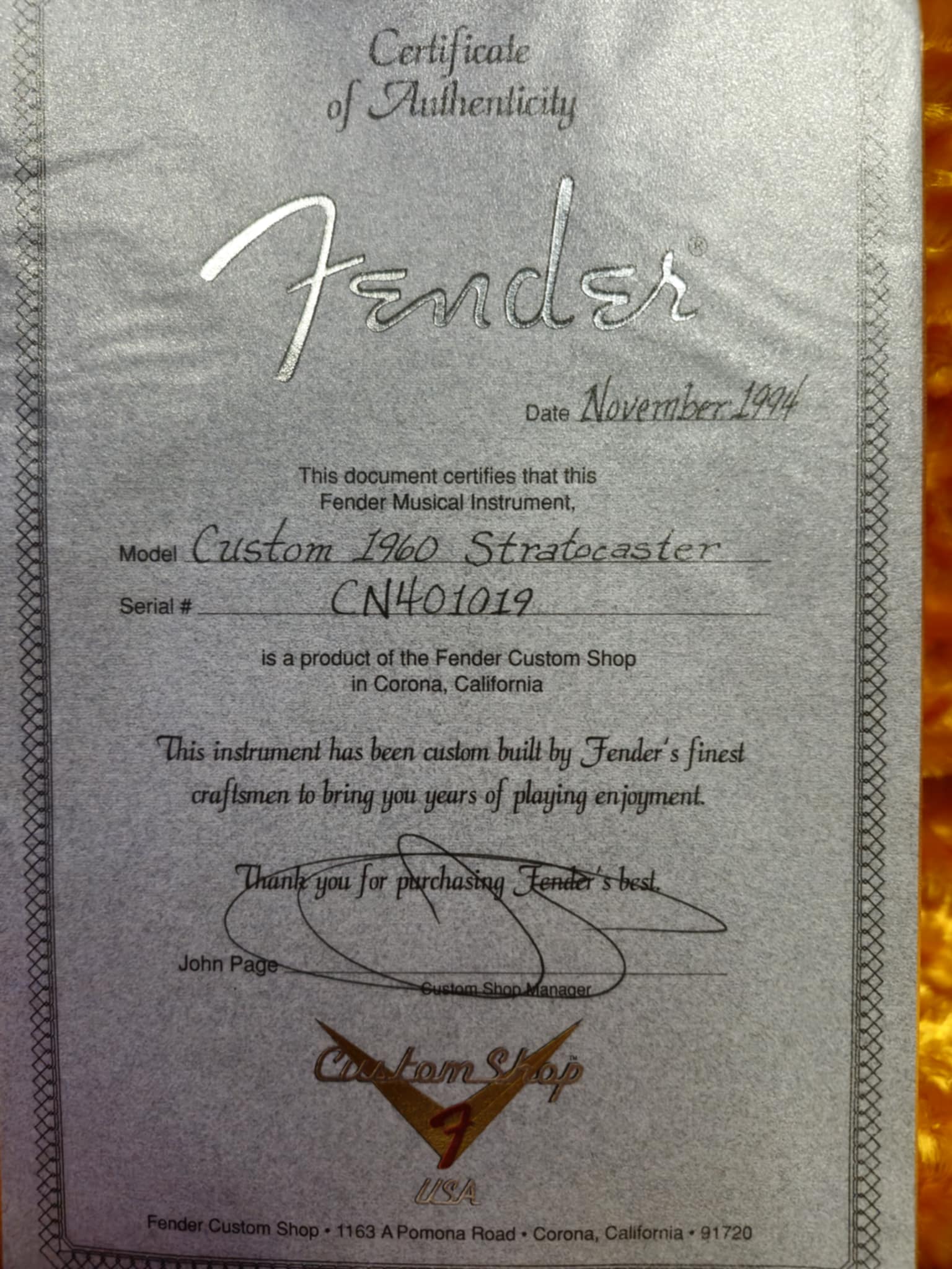 Fender Custom Shop 1960 Stratocaster 1994 (Pre-owned) *COLLECTION ONLY*