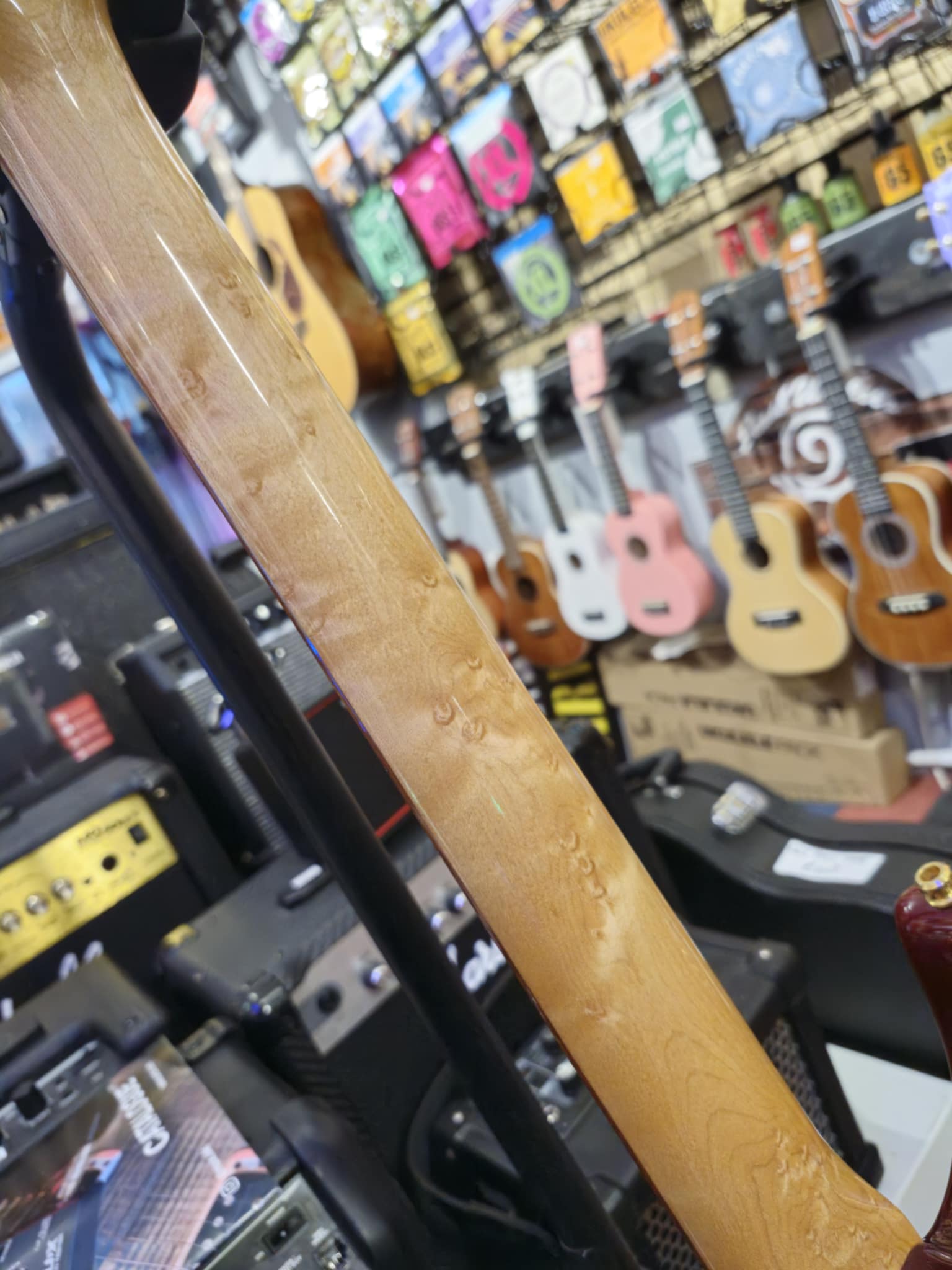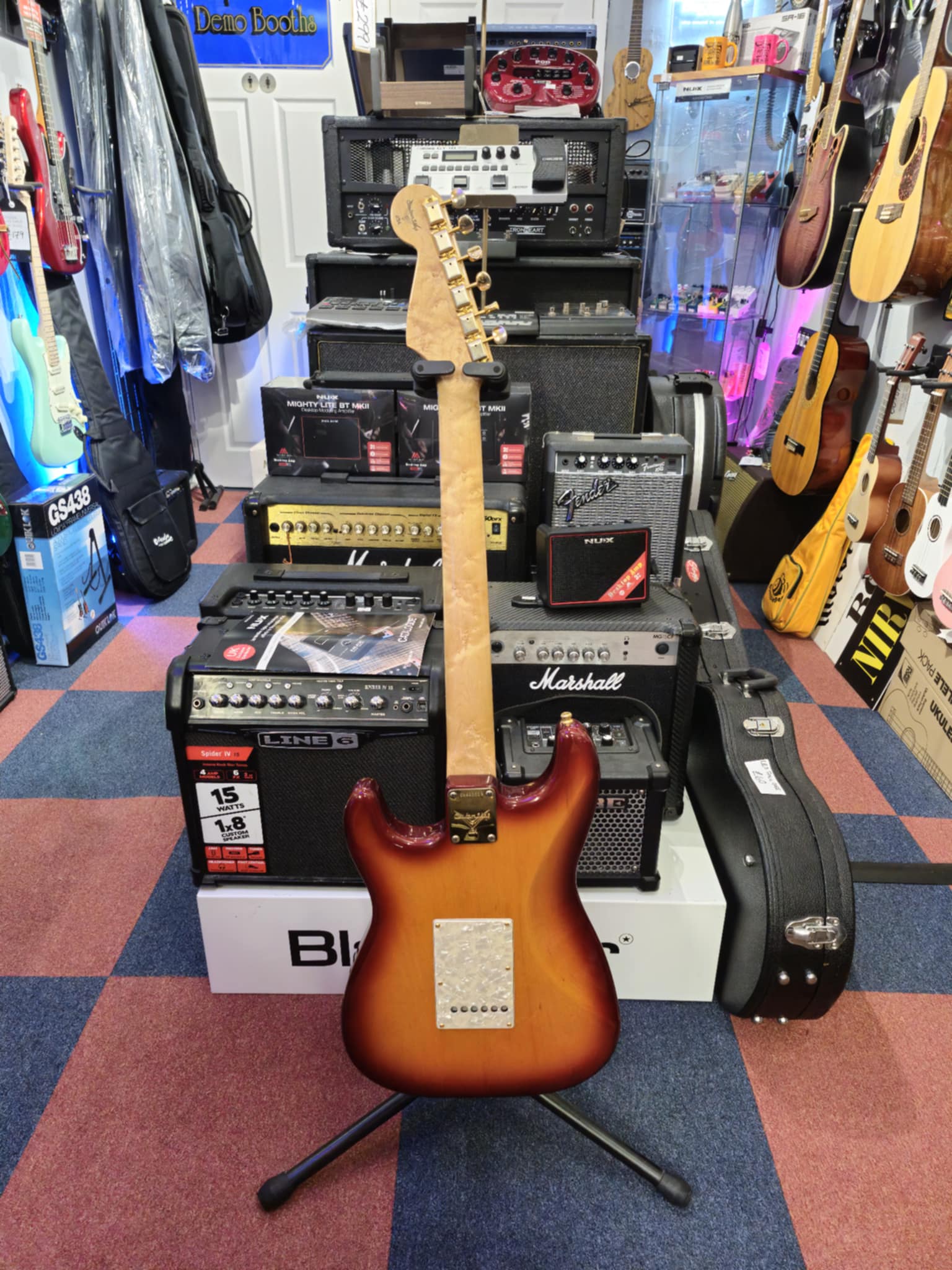 Made in the USA in the Custom Shop factory, this guitar is based off a 1960's era specification, but with a modern look, featuring a genuine quilt top and gold hardware. The neck is a 60's slim neck profile, made from a stunning Birds Eye maple. The alder body has aged wonderfully and resonates well, and is still nice and lightweight. The rosewood board feels nice under the fingers, and paired with the neck give you a buttery smooth playing experience.