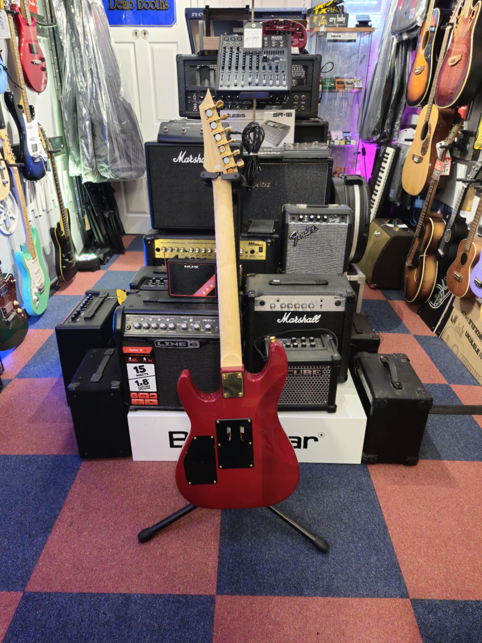 The maple neck features 24 frets, with a Roseacer fingerboard. The modern C neck profile is comfortable in the band, and allows for smooth playing up and down the board. The guitar is loaded with 2 Hi-Gain humbuckers, offering big output leaning more so into heavier styles of music.