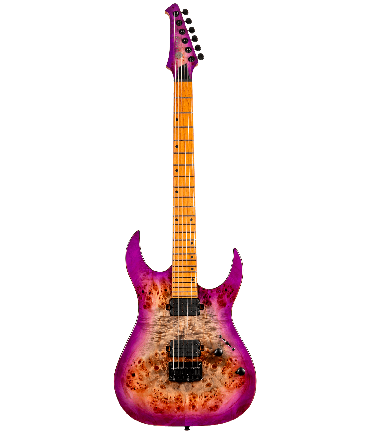 The S-450 is meticulously crafted for players who demand exceptional tone and spectacular visual appeal. The S-450 features a roasted poplar body combined with stunning gloss maple or spalted poplar tops. Its Canadian roasted maple neck with a modern D shape and matching roasted maple fretboard offers a smooth, fast playing experience, perfect for intricate solos and heavy riffs.